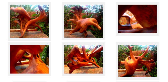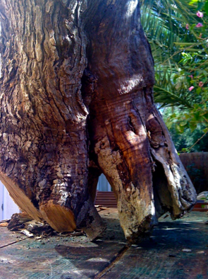 Daniel sa trasformare blocchi di legno recuperati per l’isola in strutture viventi, che raccontano i misteri di un luogo che nessuno ha ancora totalmente compreso, così paradossale e infinito… Fate (io ce le vedo…), creature naturali o sagome immaginarie nate dall’anima del legno e dall’ispirazione dello scultore.